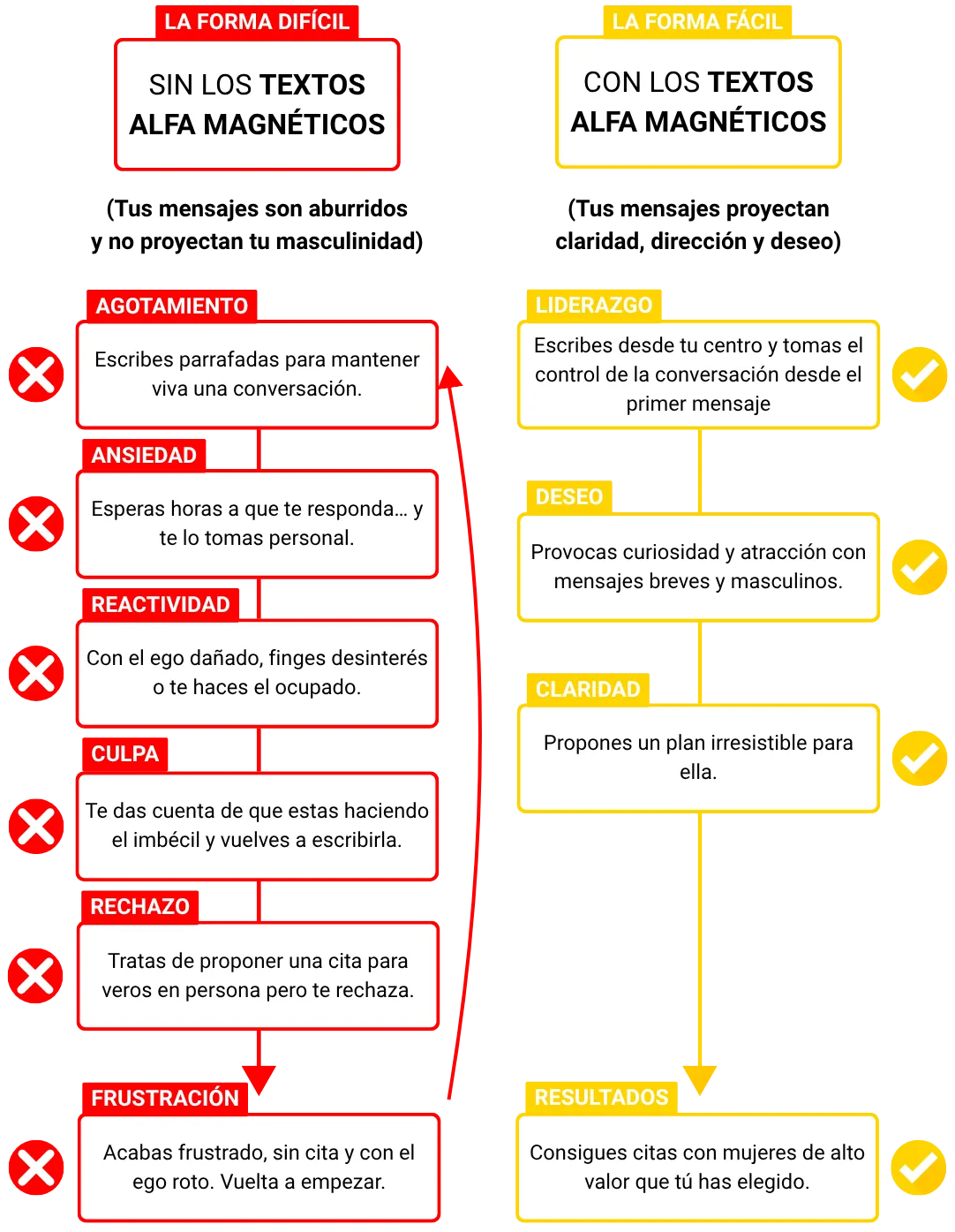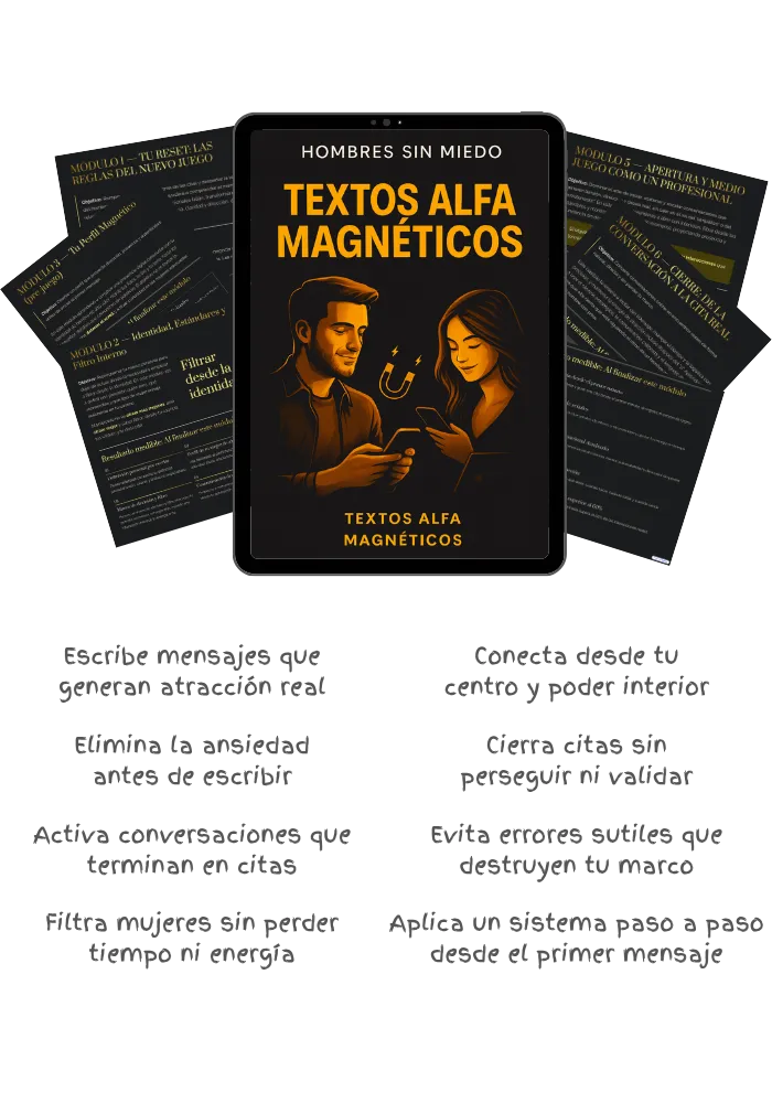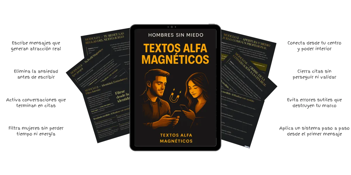 X páginas. 8 capítulos. Enfocado en una sola cosa: ayudarte a conseguir citas reales con mujeres de alto valor.